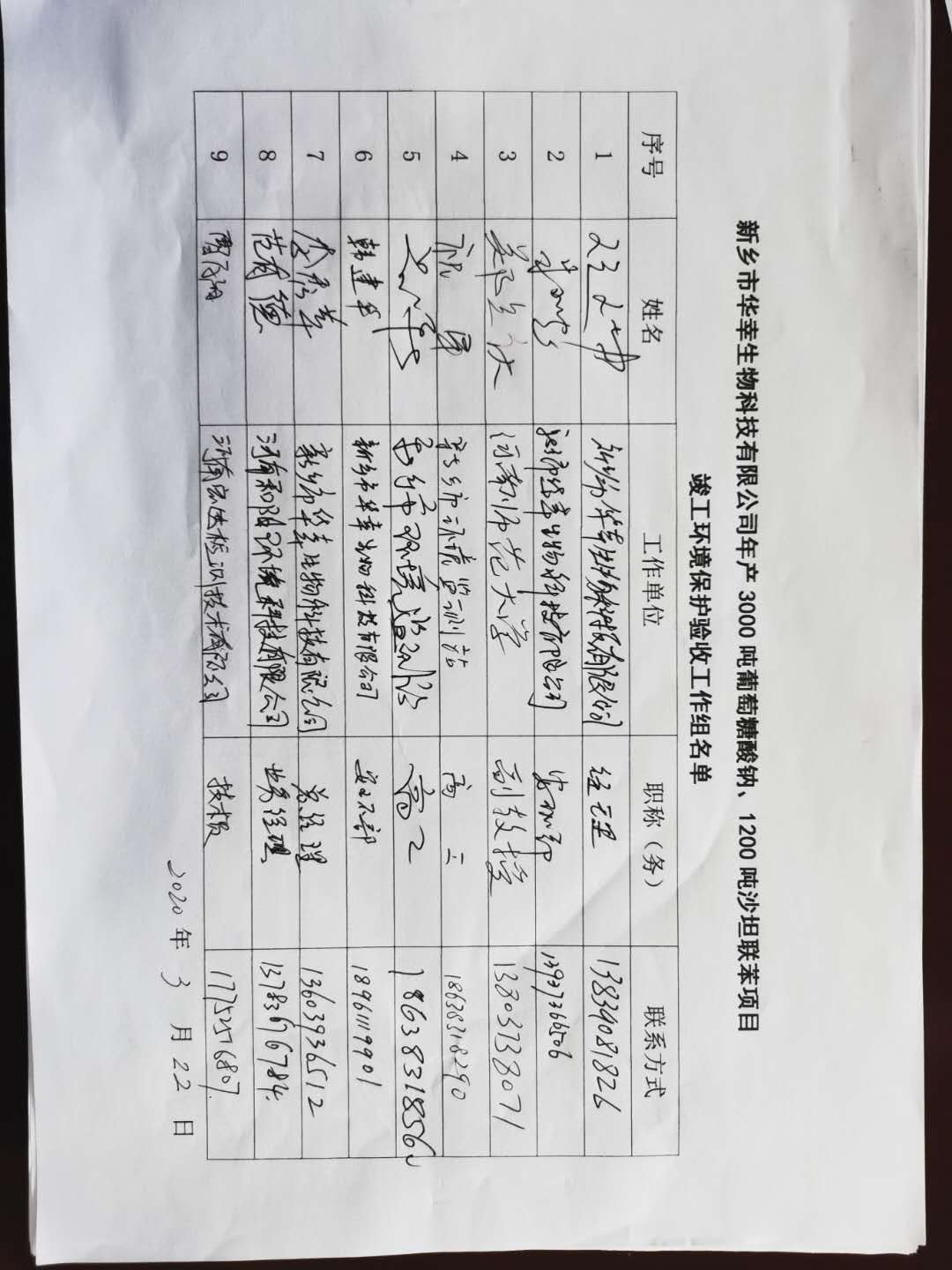 新鄉(xiāng)市華幸生物科技有限公司年產(chǎn)30000噸葡萄糖酸鈉、1200噸沙坦聯(lián)苯項目竣工環(huán)境保護驗收意見
